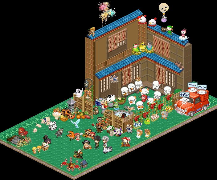 庭の写真はここに載せましたが、ぜひ自分のキャラたちを連れて、