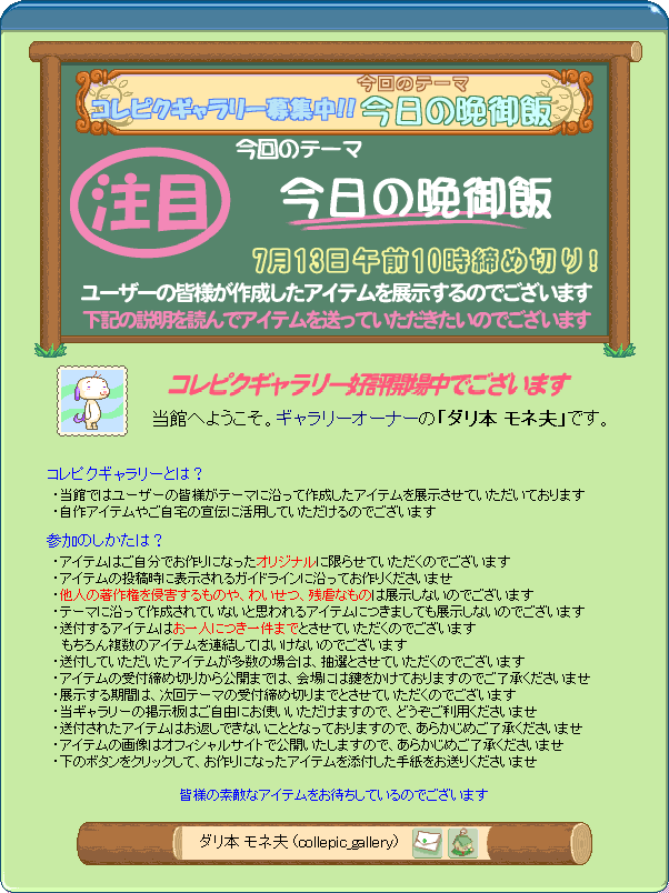 締め切りまで2週間ほどあります。アイテムを作れる方はぜひ出品されては