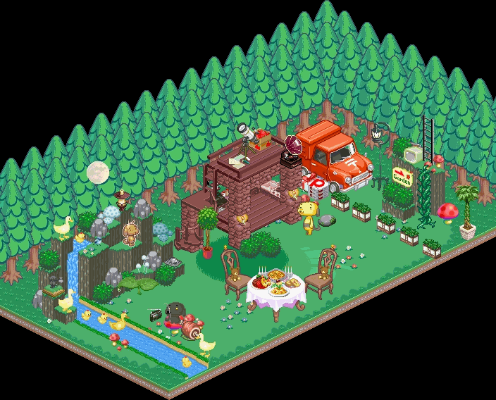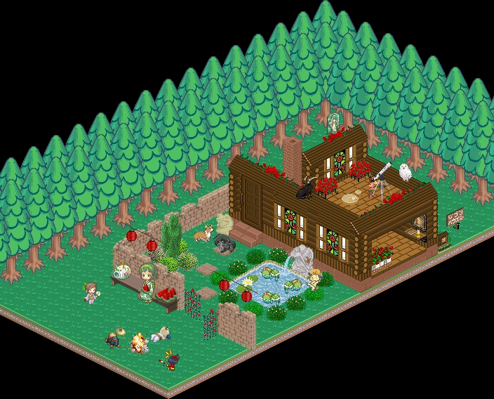 お庭にはステキなログハウスがあって、庭先でコレピクのキャラたちが