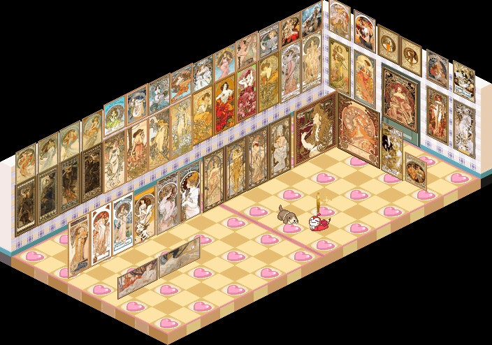 このミュシャのむずかしーパズル・・・いえポスターを、何枚も壁にはってるお家があるんですけど、